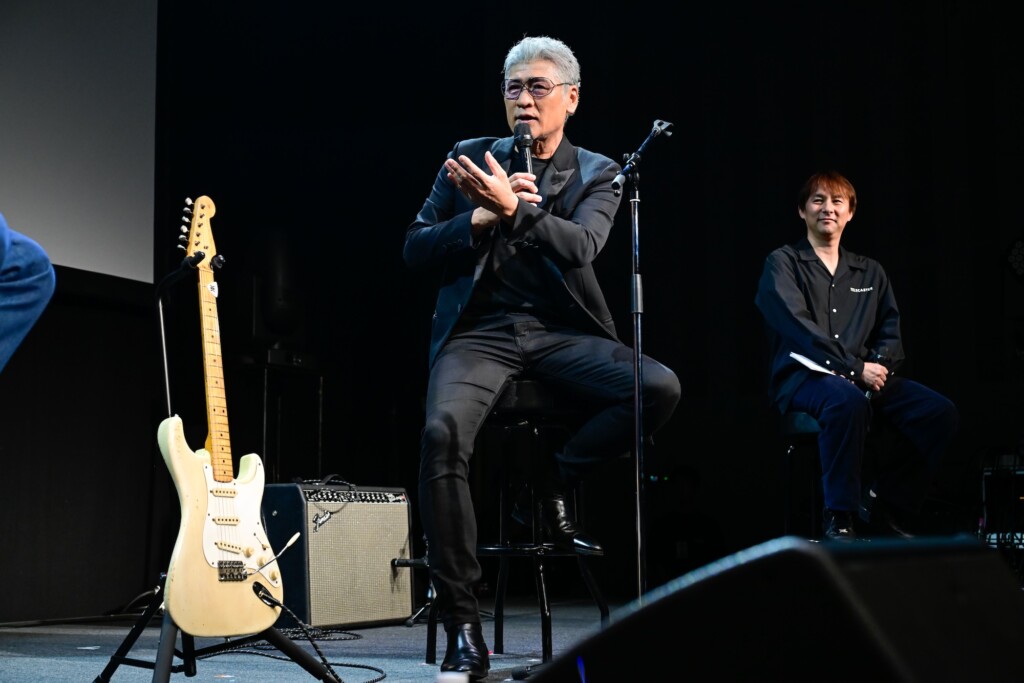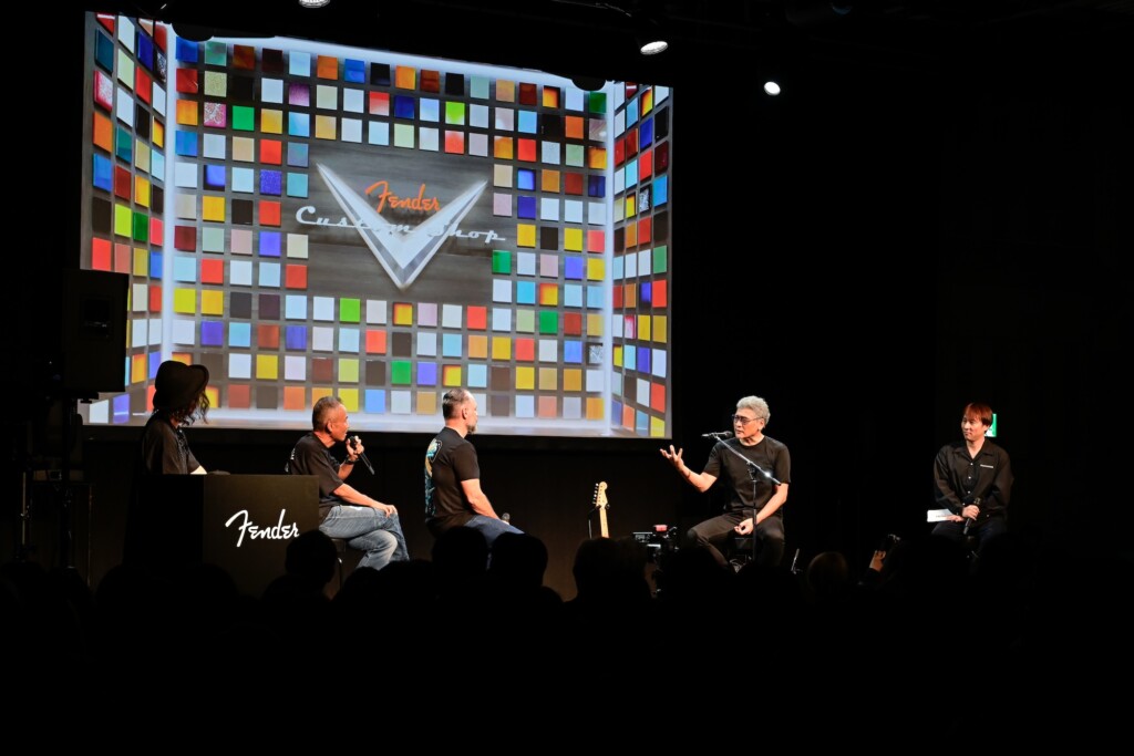 フェンダーのプロダクトマネージメントディレクター、藤川真人氏がFender Custom Shopについて説明したあと、ステージに現れたシニアマスタービルダーのポール・ウォーラー。続いて吉川晃司も登場すると、待ちわびていた観客の間から歓声が沸き起こった。