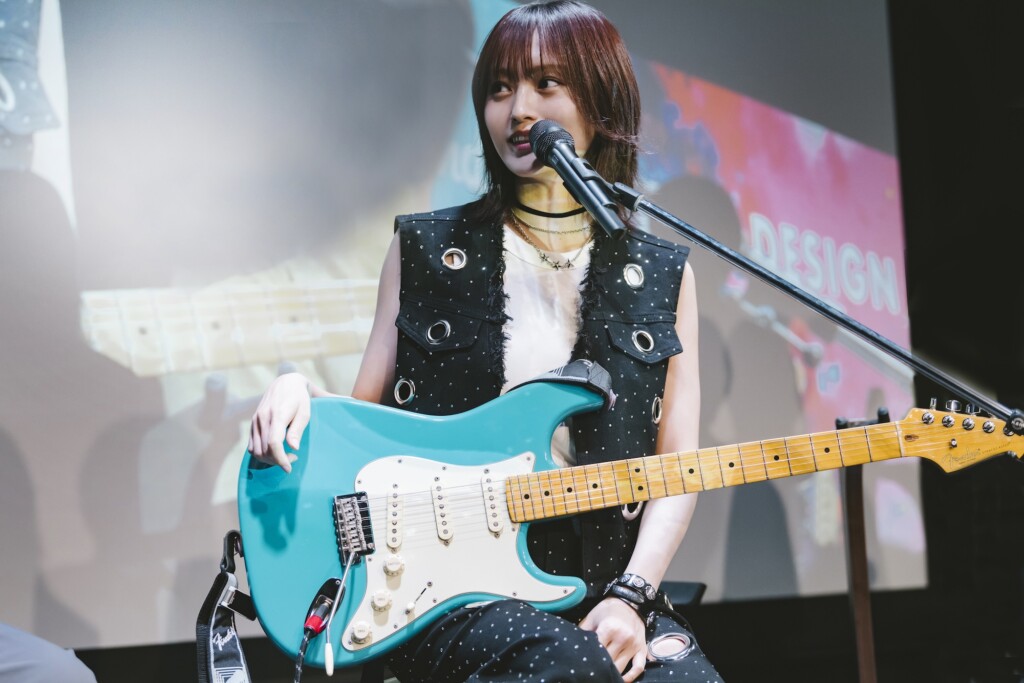 そして、山本は現在のメインギターであるMiami BlueのAmerican Professional II Stratocasterを観客に披露。「とても気に入っています」とその魅力を語る。
