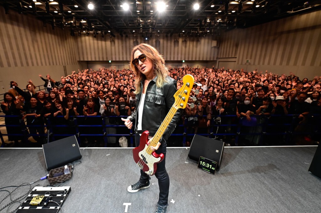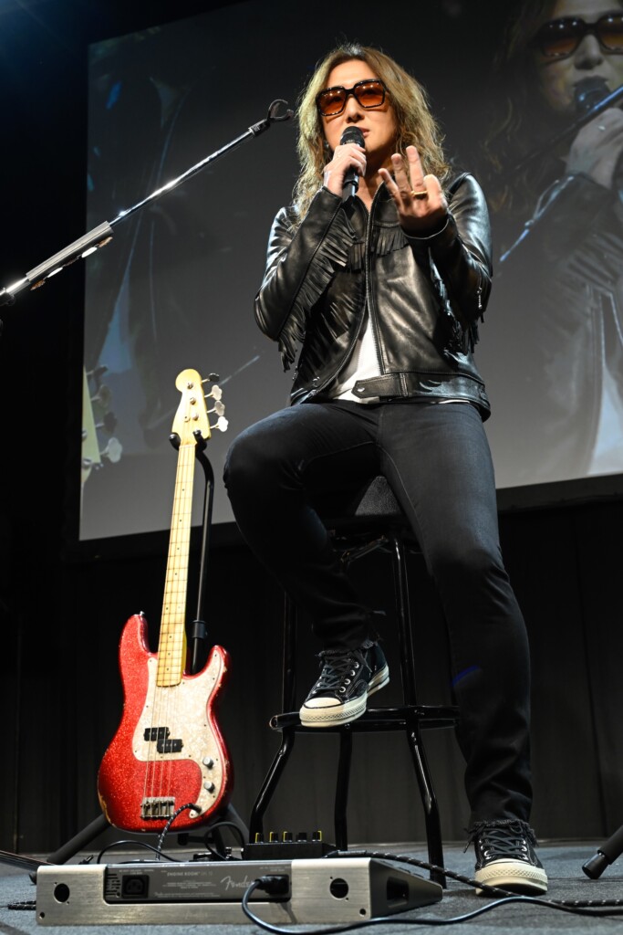 注目のトークセッションは超満員。大歓声に迎えられたJは「ライヴみたいですね! 皆さん、ありがとうございます!」と微笑んだ。彼はちょうどこの日の前日に渋谷CLUB QUATTROでツアーファイナルを終えたばかり。ライヴの翌日だけど気力はみなぎっているし、ベースの話をたくさんしたいと意気込んだ。