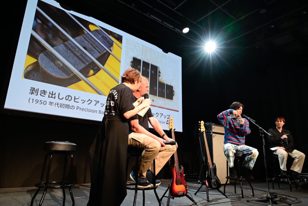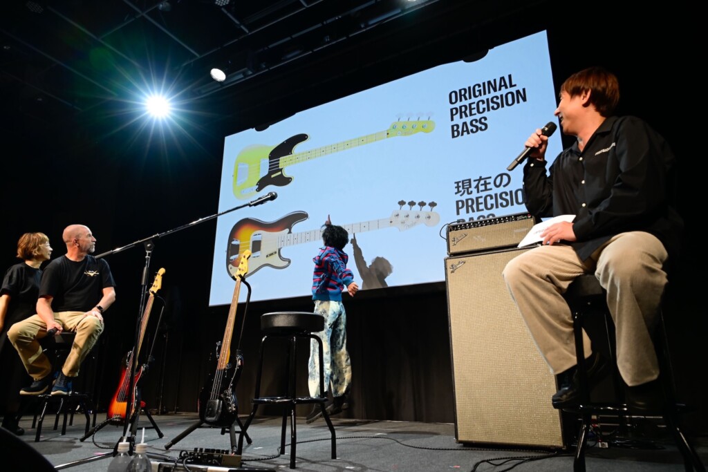 一方のPrecision Bassは、より“野性的”な存在として紹介。「こいつが本当にじゃじゃ馬(笑)。扱いづらいけど、ちゃんと鳴らしてあげるとめちゃくちゃ良い音がするんです。久々に触ったけど、やっぱり…たまらんなあ」としみじみ語る姿に、笑いと共感の空気が広がった。