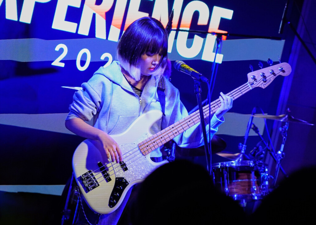そして、3ピースのバンドアンサンブルをしっかり支えていたのが、かほのJazz Bass。フィンガーピッキングでメロディアスなフレーズを奏でつつ、随所でスラップもしながらファンキーな躍動感を生んでいた。3人がアイコンタクト時々交わしながら演奏のタメとキメを共有。起伏に富んだドラマチックな展開を経てエンディングを迎えると、観客は大きな拍手をステージに送った。
