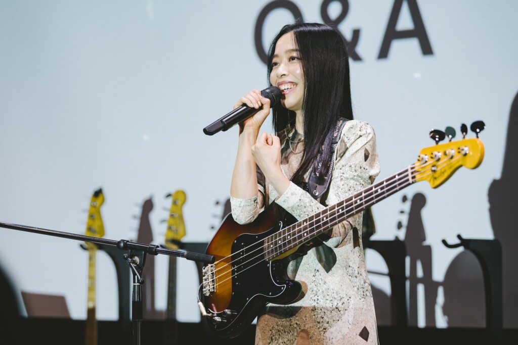 「ベースだけでこれだけたくさんお話しする機会は初めてでした。拙い話を聞いてくださって、本当にありがとうございます。ずっと昔から好きだった楽器です。こうしてフェンダーのイベントで話すことができて、本当に光栄です」