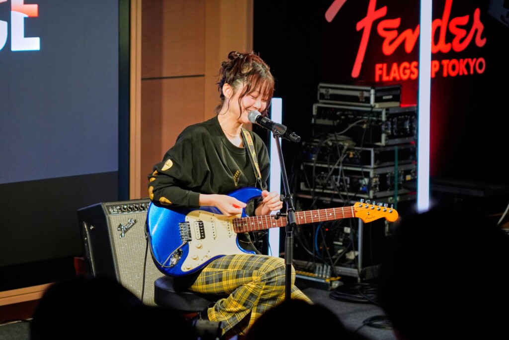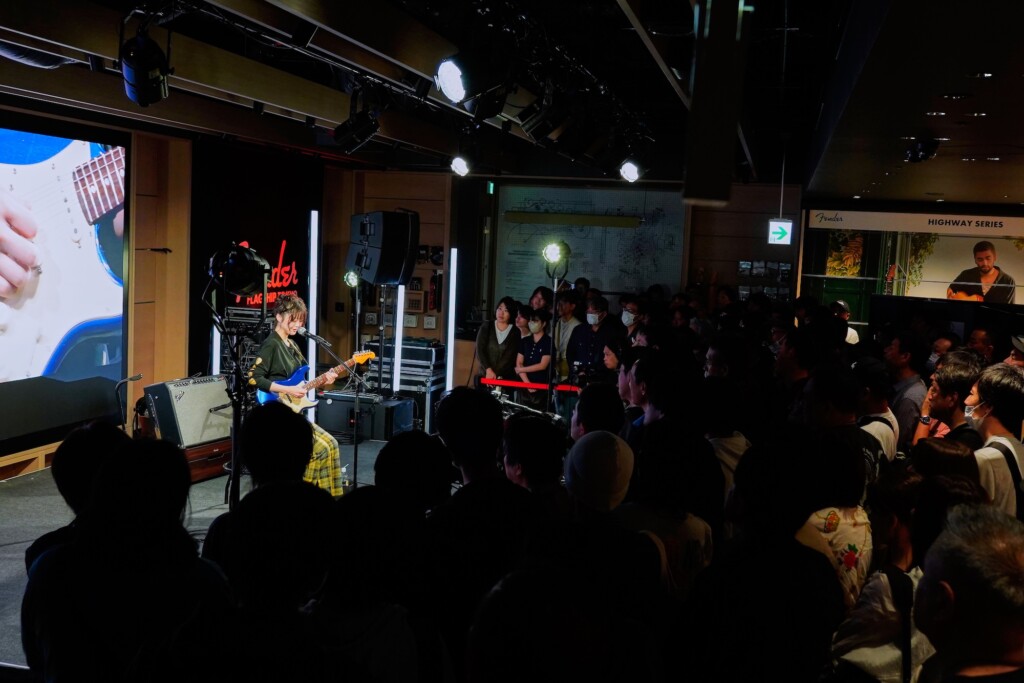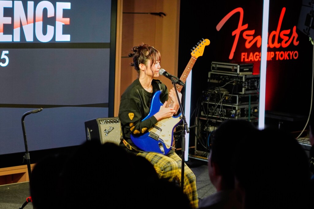 これから初めてギターを購入する人に、おすすめのモデルを聞かれた弓木は、思わず「安いのでいいんじゃないですか?」と本音を漏らして会場を沸かせる一幕も。「でもほんとに、フェンダーが出している入門用のギターもすごくクオリティが高いんです。今は選択肢が多いし、自分がビビッとくる1本を見つけてほしい。音でもデザインでも何でもいい。“これ弾きたい”って思えるギターが練習のモチベーションになると思います」