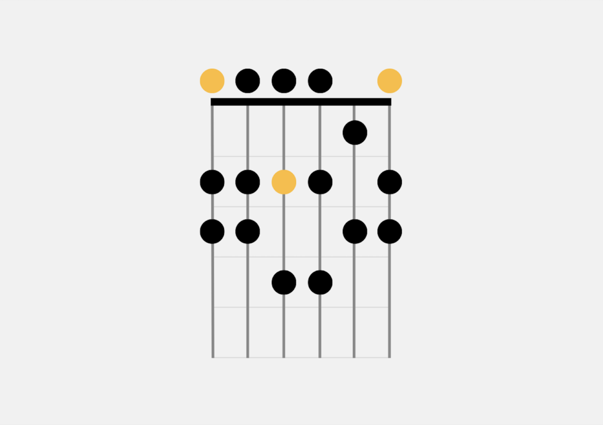 ダイアグラムの白い点は開放弦(弦を押さえずに鳴らす)を表しています。