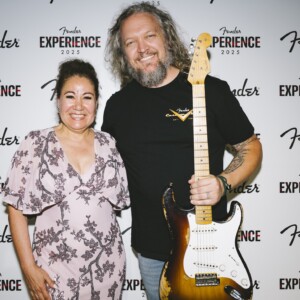 ソロデビュー35周年を飾る最新アルバム『SPRING HAS COME』に収録されている「John English」は、フェンダーのシグネイチャーモデルの1号機、Michiya Haruhata Stratocaster®︎のマスタービルダーの名前を冠した楽曲。その1号機のStratocaster®︎でプレイ。リバースヘッド以外はノーマルのStratocaster®︎に近い仕様で、サウンドは素直なストラトサウンドで、歪ませると突き抜けたミッドハイが特徴的。ブルーのジャケットにも映えるホワイトカラーで、力強いバッキングでは芯のあるミッドのドライブサウンド、リードはミッドに太さを持ったサウンドで魅了した。