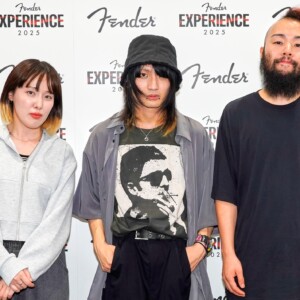 機材面を見てみるとJazzmasterを使用しているINORANは曲によってCustom Shop製の#1 (Black)、#2 (Olympic White)、 #3 (Lake Placid Blue) を使い分けている。クリーンで抜けの良いサウンドはもちろんだが、ラウドな歪みもJazzmasterならではの明瞭さであった。どのギターもメインと呼べる程の使用頻度だ。