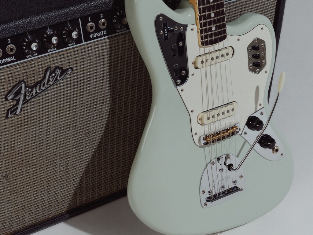 塩塚モエカ(以下:塩塚) 初めてギターを買った時、全然ギターのことがわからなくて、楽器屋さんに勧めてもらったのがAmerican Vintage ʼ65 Jaguarだったんです。同じように初めてギターを買うけど、どれにしようか悩んでいて、体が小柄な方にすごく合うと思います。これからギターをやってみたいという人に出会ってもらえると、長く使ってもらえるような気がします。音は私が使い込んできた感じに作ってもらいましたけど、使い込んでもらったらそこからまた変わると思うので、最初のギターと一緒の感覚で自分も成長してもらえたらすごく嬉しいです。もちろん羊文学のファンの方とか、私たちの曲をカヴァーしたい方にもぴったりだと思うし、そうじゃなくてもこの色(Aged Sonic Blue)のJaguarってすごくかわいいから、見た目でかわいいなって思った方にも手に取ってほしいです。